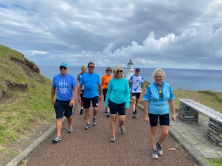 James and pineapple girl with our helmets Picnic before the I took a video of them loading 70 bikes onto roof of ferry pretty awesome and the
